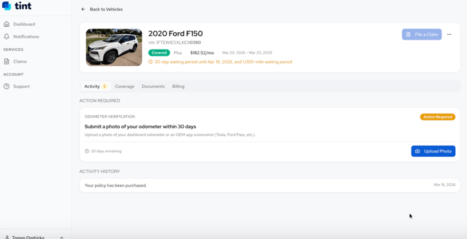 You must submit your odometer photo within 30 days of purchasing your policy.